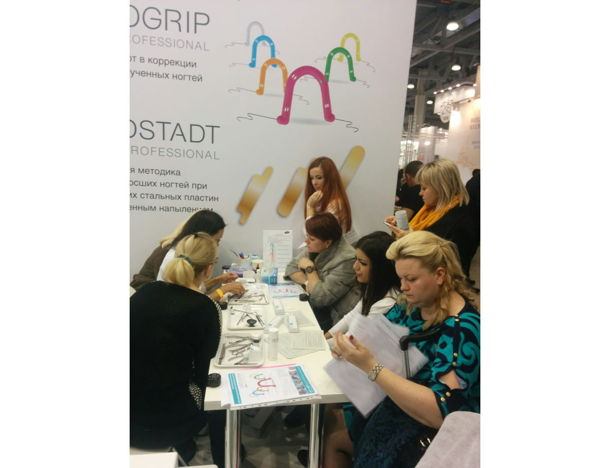 26 - 28 октября с 11 до 18 часов на нашем стенде проходил Workshop для специалистов ногтевого сервиса, в рамках которого преподаватели (врачи подологи) демонстрировали технику установки коррекционных системORTOGRIP и GOLDSTADT PROFESSIONAL. Для желающих попрактиковаться в установке пластин и скоб под руководством преподавателей компании, были оборудованы рабочие места со всеми необходимыми инструментами и материалами. Кроме того, все участники воркшопа смогли получить специальную скидку 15 % на обучение новым методикам в школе компании.