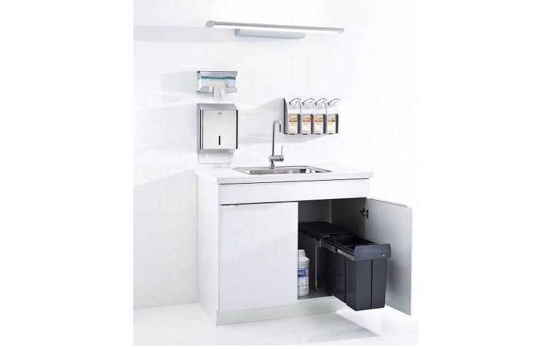 Функциональная конструкция Диспенсера для перчаток “Соло” позволяет закрепить его к стене любой боковой поверхностью, а также разместить вертикально.