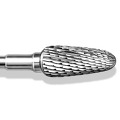 Твердосплавная фреза с мелкой перекрёстной насечкой для тонкой обработки поверхности ногтя перед полировкой.