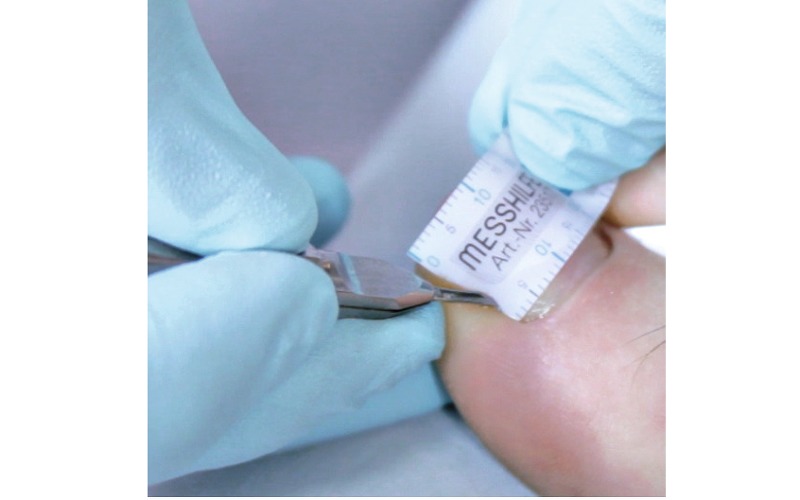 Специальная измерительная лента из прозрачного эластичного пластика с миллиметровым делением позволяет точно измерить ширину ногтевой пластины. С ней вы без труда подберете необходимый размер коррекционной системы, например, GOLDSTADT professional.