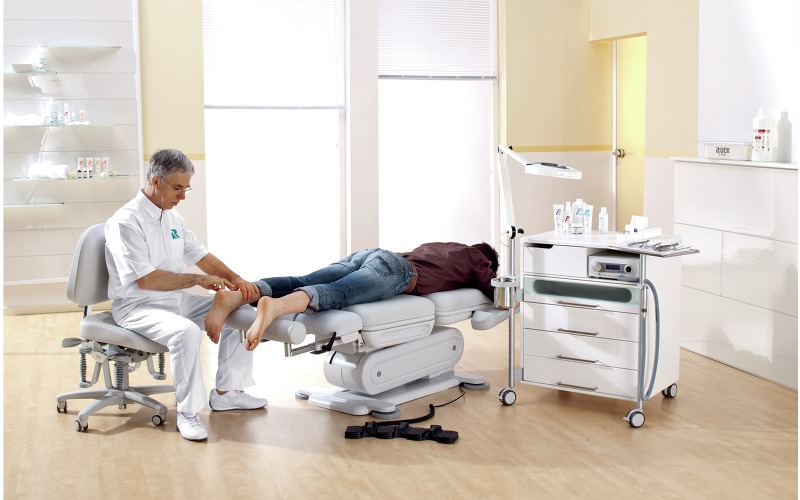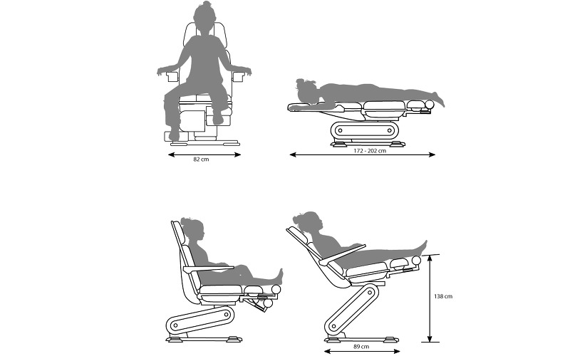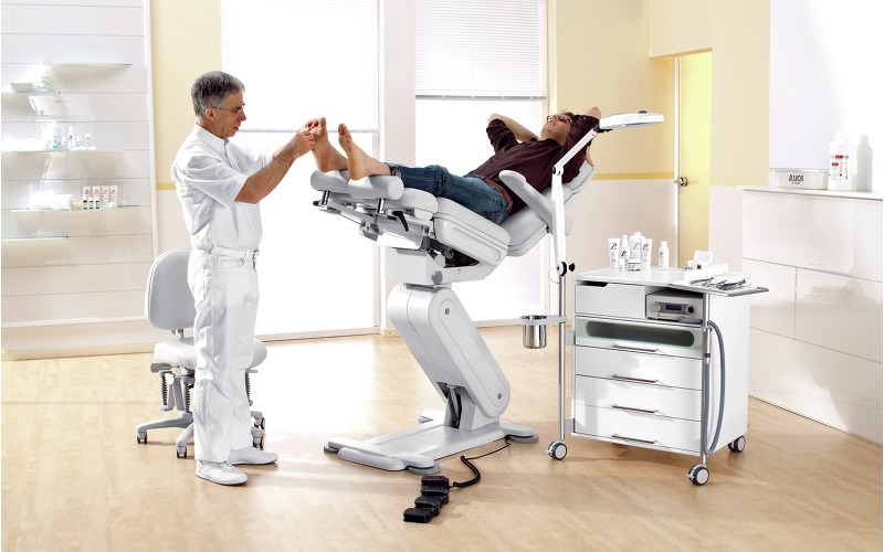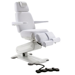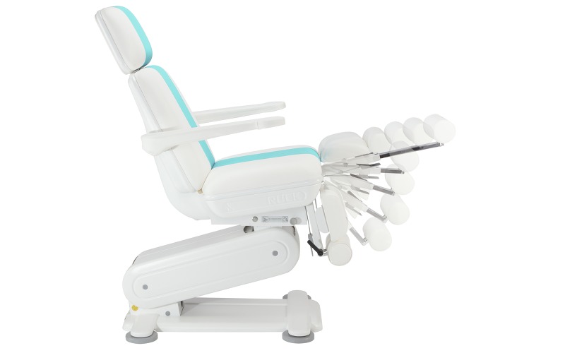 Кресло Stella 3S оснащенo двумя мощными электромоторами, которые легко справляются с весом до 200 кг, что подтверждено сертификатом TÜV. Плавная регулировка позиций кресла, вплоть до горизонтального положения осуществляется при помощи эргономичного блока ножных педалей, защищенных от попадания влаги и пыли. Минимальная «посадочная» высота сиденья составляет 53 см от уровня пола и является наиболее оптимальной для пожилых и невысоких людей. Опоры для ног с независимой пневматической регулировкой угла наклона плавно перемещаются и фиксируются в любой точке одной рукой. Они изготовлены из устойчивого к механическим и химическим воздействиям пенополиуретана. Цилиндрические опоры для стоп выдвигаются на удобное для клиента расстояние и с помощью запатентованного механизма поворачиваются вокруг своей оси в горизонтальной плоскости, предоставляя мастеру еще больше пространства для работы. При максимальном подъеме кресла опоры для стоп могут достигать высоты 138 см, обеспечивая мастеру беспрецедентный доступ к любой области стопы как при работе сидя, так и стоя.
