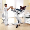 Матрац выполнен из мягкого пенополиуританового материала, который долговечен и прекрасно держит форму. Его прочная обивка из специальной искусственной кожи устойчива к воздействию дезинфицирующих средств. Плавные закругленные формы матраца, отсутствие каких либо выступающих кантов и острых углов – залог исключительного комфорта клиента при длительных процедурах. Этому же служит и специальная пружинная система, находящаяся под сидением кресла. Матрац сиденья и спинки крепится к раме при помощи винтов и поэтому легко снимается, что очень удобно при сервисном обслуживании или его замене.