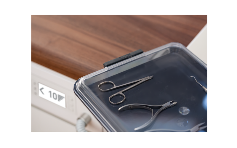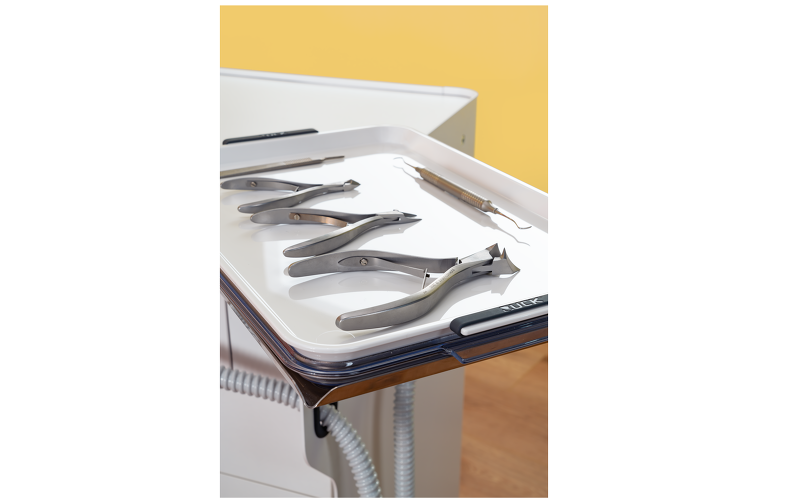 Прозрачная крышка может помещаться под поднос для экономии места во время процедуры. Подлежит дезинфекции средствами не содержащими спирта. Скрепляется с подносом по бокам при помощи силиконовых ремешков (арт. 2915701)