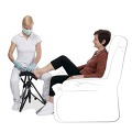 Решением этой проблемы является многофункциональная подставка для ног. Ее инновационная форма позволяет мастеру устанавливать оптимальный рабочий угол для обработки пальцев ноги, не причиняя при этом ни малейшего дискомфорта клиенту. Даже труднодоступная пяточная область при соответствующей мобильности клиента обрабатывается легко и быстро. Устойчивый штатив гарантирует хороший контакт с полом, а рычаг быстрой регулировки позволяет удобно изменять положение ножной опоры. После завершения процедуры подставка легко собирается и упаковывается в специальный чехол.