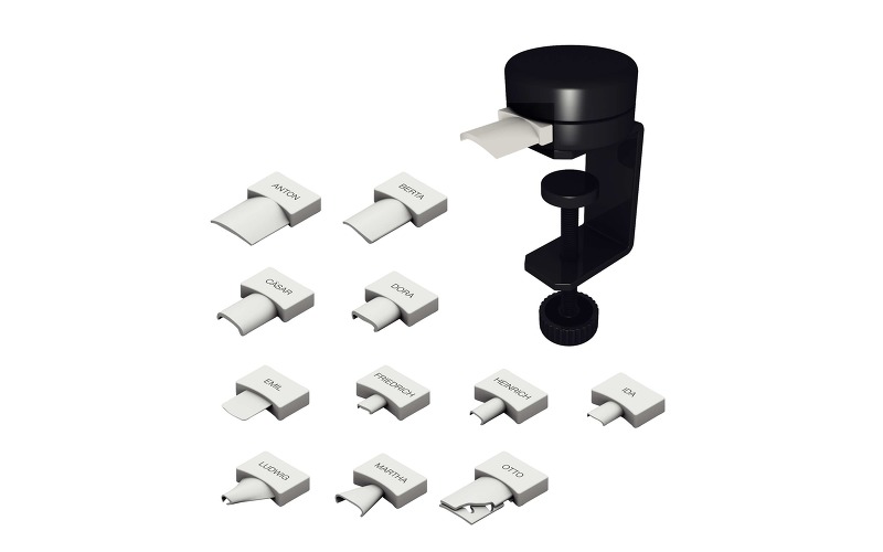 Специальный набор пластиковых моделей ногтевых пластин с настольным держателем служит для отработки практических навыков по установке различных коррекционных систем. В набор собраны 12 слепков-моделей (по 5 шт. каждого вида), имитирующие наиболее часто встречающиеся в практике подолога клинические ситуации. На одной модели можно выполнить несколько аппликаций. В комплект также входит специальный настольный держатель со струбциной. Его можно закреплять на столешнице толщиной до 45 мм.