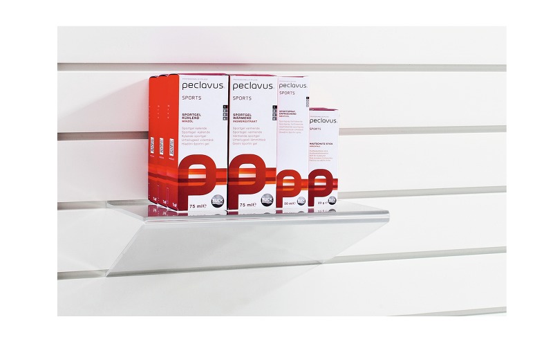 Благодаря своей компактности, изящности и лаконичному дизайну панель-витрина может использоваться даже в небольших кабинетах и прекрасно вписывается в любой интерьер. Это эксклюзивный дизайнерский продукт с гибкими возможностями. Брошюры, косметику, ортопедические изделия, пробники и тестеры — все это теперь вы сможете расположить буквально на уровне глаз клиента. В зависимости от того, какие товары и в каком количестве вы хотите разместить на витрине, вы можете заказать нужное количество полок, держателей, боксов, контейнеров и крючков. Все эти аксессуары изготовлены из высококачественного акрила или металла, легко комбинируются между собой и крепятся к настенной панели бесшовным способом.