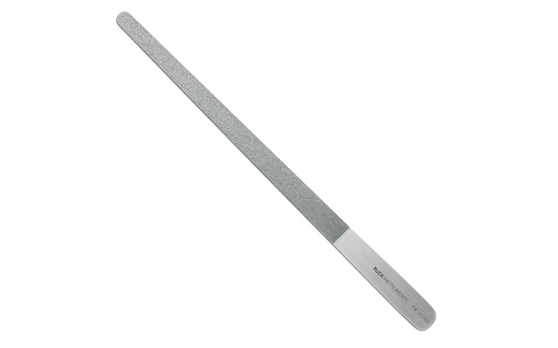 Пилка для щадящей обработки ногтей. Алмазная рабочая поверхность с обеих сторон, два различных абразива. Можно стерилизовать.