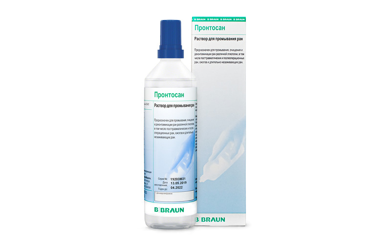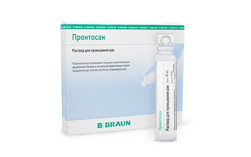 Раствор пронтосан можно использовать непосредственно для промывания ран, либо применять в виде аппликаций - обильно смочив раствором стерильную салфетку. Для исключения контаминации раны патогенной флорой рекомендуется обрабатывать как можно большую площадь вокруг раны. При аппликации и смене повязки она должна быть тщательно смочена раствором Пронтосана (рекомендованная экспозиция — 15 минут), тогда смена повязки будет проходить щадяще и безболезненно. После обработки раствором пронтосан на рану наносится гель пронтосан слоем не менее 3-х мм. Сверху слой геля покрывается марлевыми салфетками или другими перевязочными средствами, которые фиксируются вторичной повязкой. Пронтосан совместим с большинством известных видов раневых покрытий.