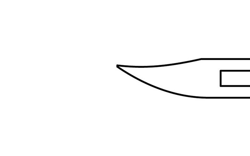 Длина: 13 см, режущая кромка: 18 мм, вогнутая.