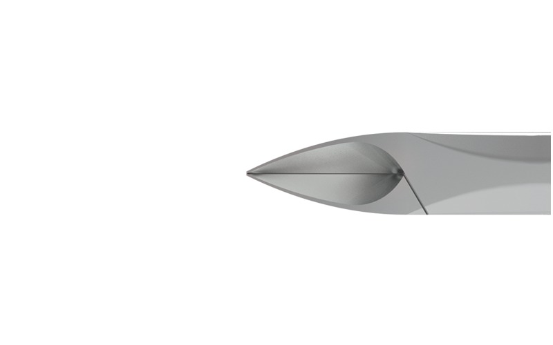 Инструмент для работы с твердыми, утолщенными ногтями. Оптимизированная геометрия ручек в сочетании с трапециевидным профилем меньше нагружают кисть специалиста во время работы. Закругленные, слегка вогнутые лезвия с острым кончиком обеспечивают идеальную чистоту среза. Центральная пружина без механизма блокировки.