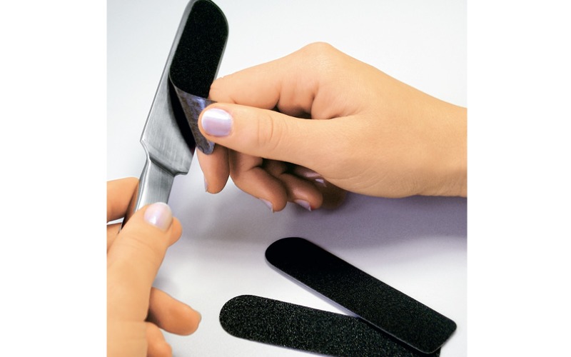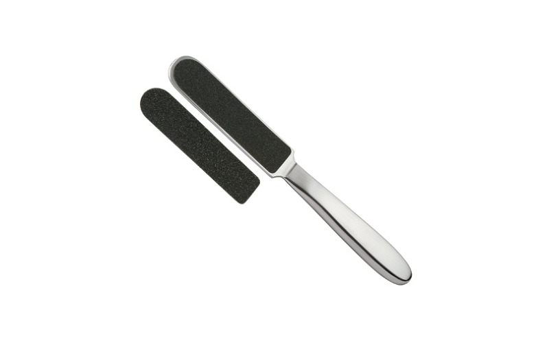 С этим инструментом обработка мозолей и обширных ороговелостей становится деликатной и щадящей процедурой. Терка выступает в качестве основы, на которую наклеивается одноразовое абразивное покрытие. Вы каждый раз подбираете покрытие необходимого абразива с учетом выраженности гиперкератоза, обеспечивая тем самым высочайший уровень гигиены и безопасности.