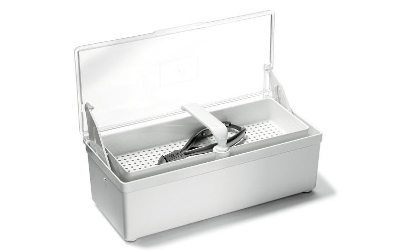 Практичная емкость с крышкой для замачивания инструментов в дезинфицирующих растворах. В комплект входит внутренняя вставка с отверстиями и ручкой, обеспечивающая удобное извлечение инструментов из раствора.