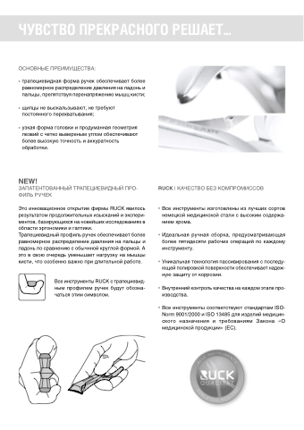 Это инновационное открытие фирмы RUCK явилось результатом продолжительных изысканий и экспери- ментов, базирующихся на новейших исследованиях в области эргономики и гаптики.